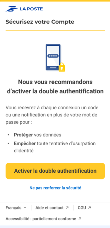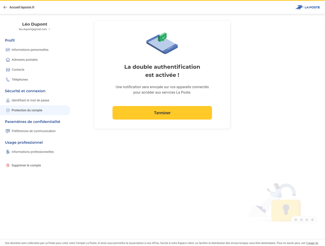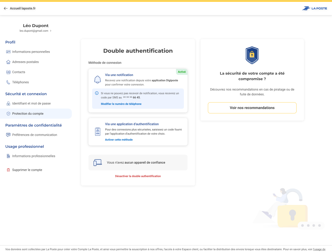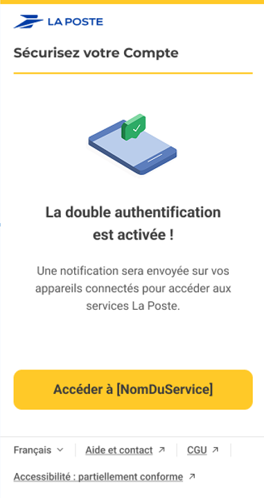 - Votre double authentification par notification mobile est activée. Vous pouvez accéder à votre compte Digiposte.