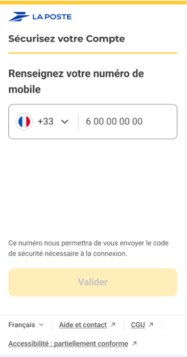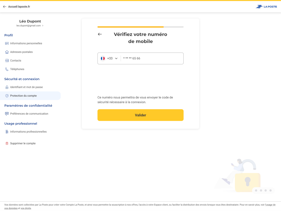 - Renseignez votre numéro de téléphone ou validez le numéro déjà indiqué. Cliquez ensuite sur “Valider”