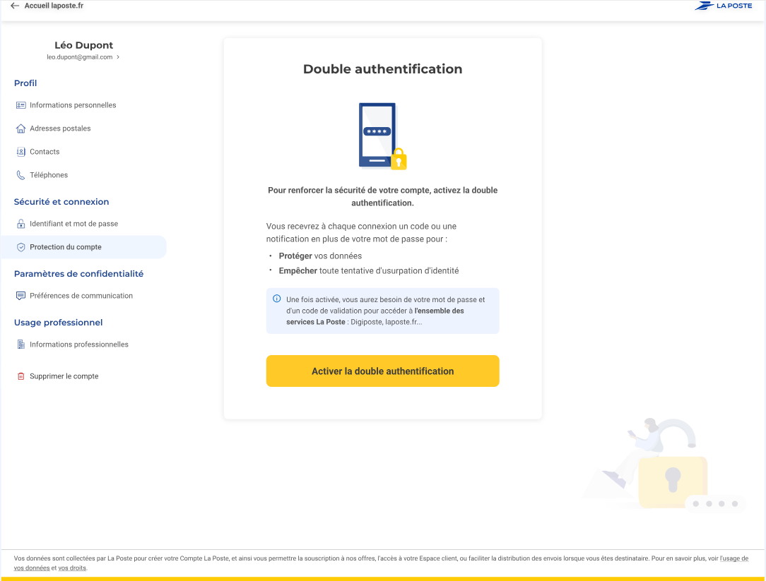 Pour maintenir une connexion renforcée à votre coffre-fort Digiposte, il est nécessaire de paramétrer une double authentification.