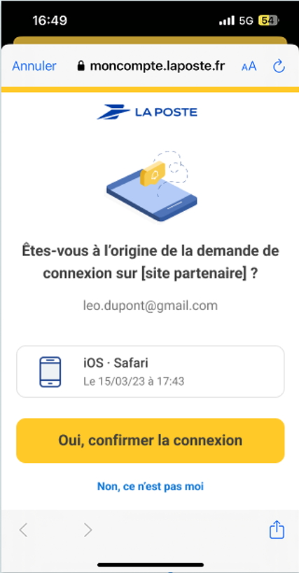 Ce type de méthode de double authentification consiste à envoyer une notification sur votre mobile après avoir renseigné votre mot de passe afin que vous acceptiez ou refusiez l'accès d'un site web ou d'une application à des fins de vérification d'identité.