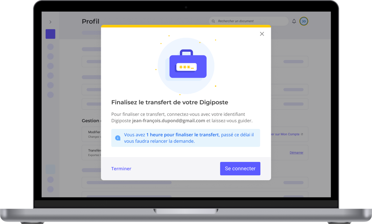 - Pour finaliser ce transfert, connectez-vous au Digiposte sur lequel vous voulez transférer vos données.